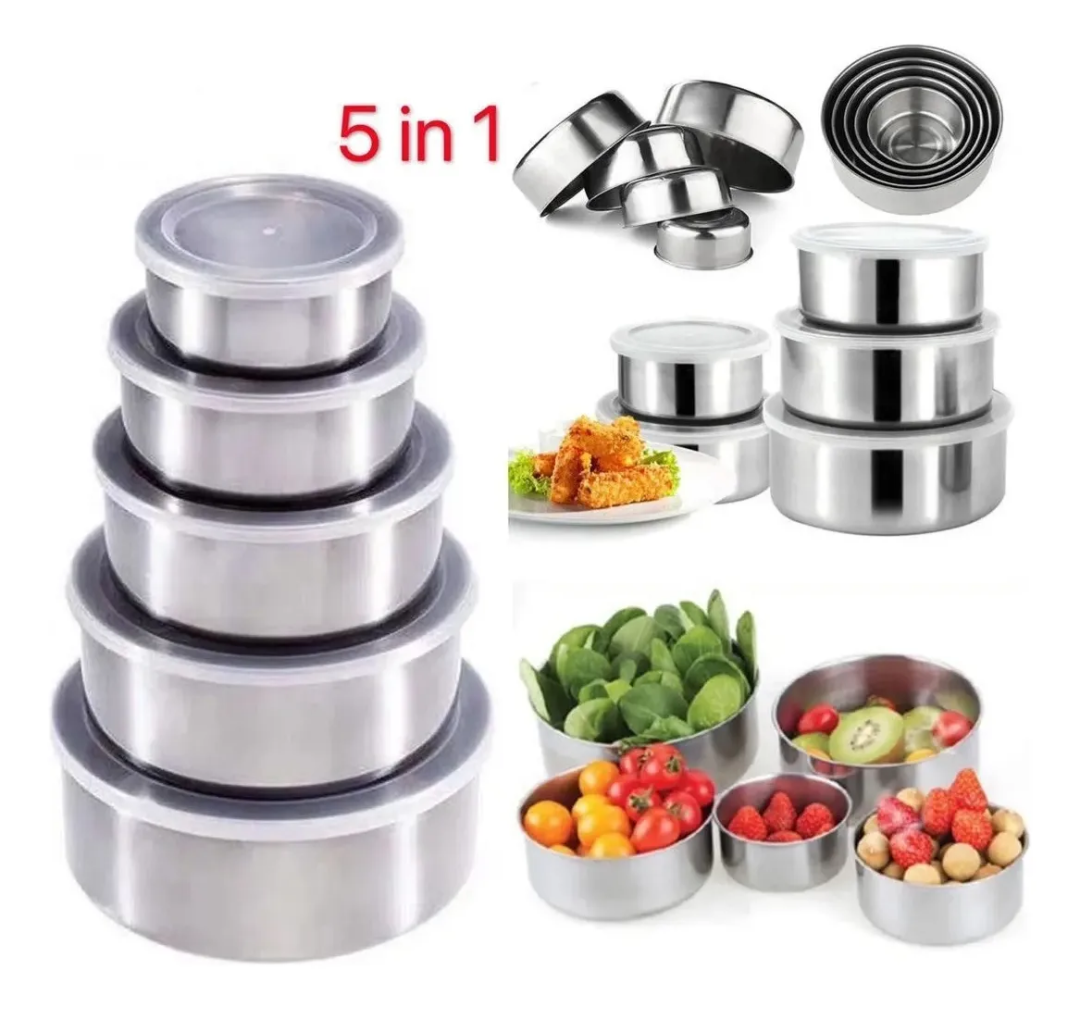 5 bolws/Potes de acero inoxidable, practios y utiles.